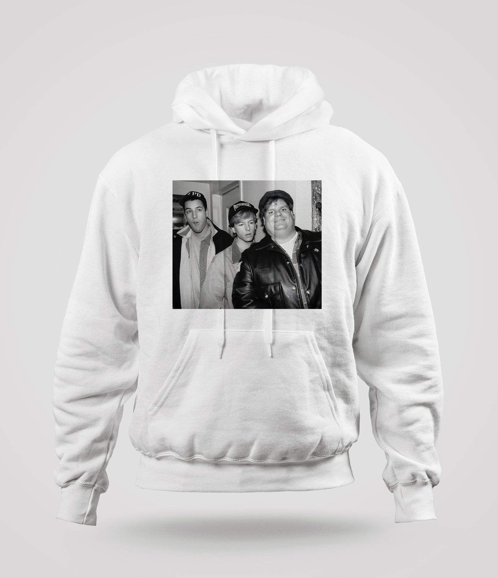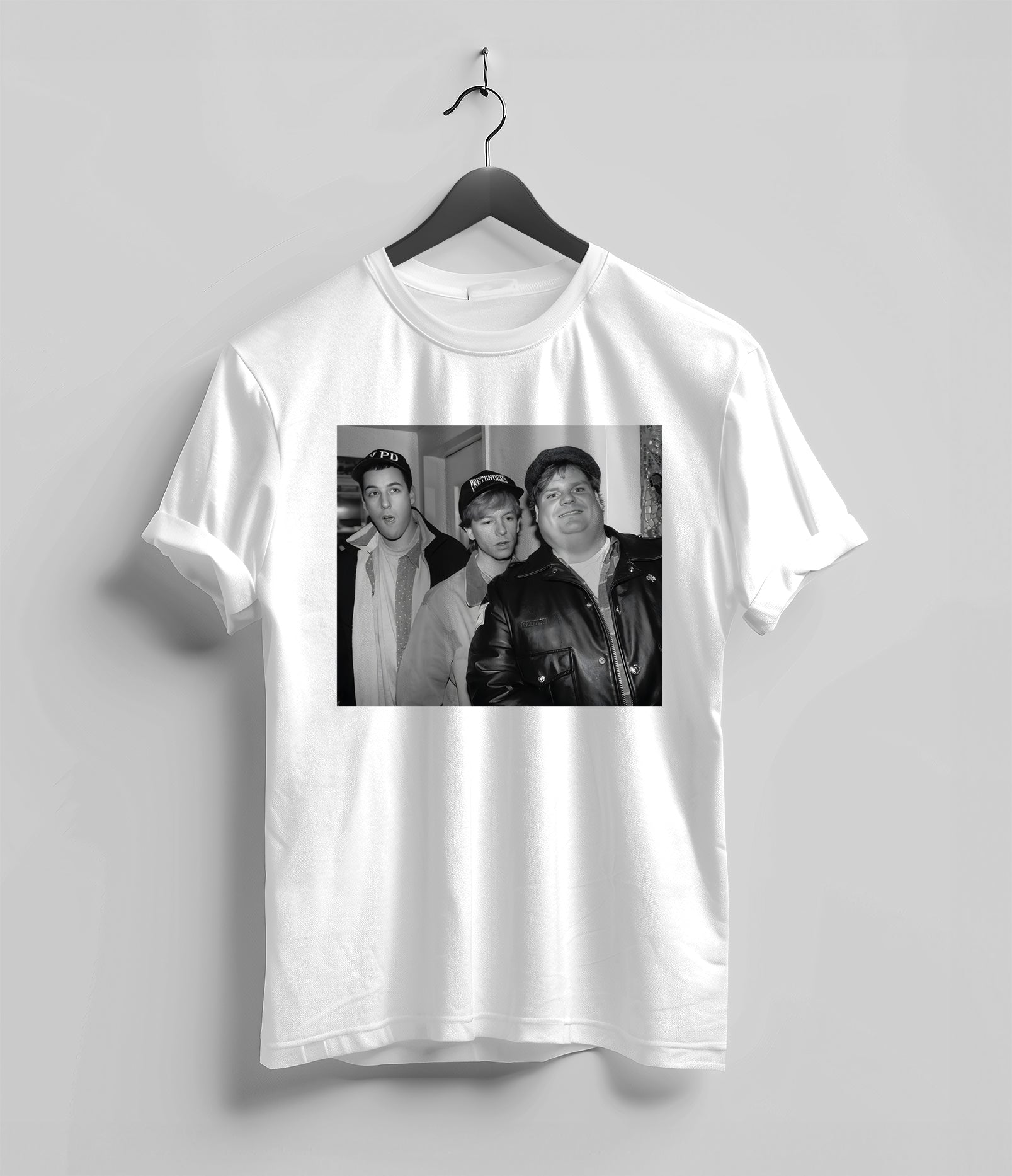 Celebrate the golden era of 90s comedy with this Adam Sandler, Chris Farley and David Spade T-shirt, featuring the iconic trio that made SNL unforgettable. This retro comedy tee is perfect for fans who love legendary sketches, classic movies, and the unbeatable chemistry of three comedy greats.
